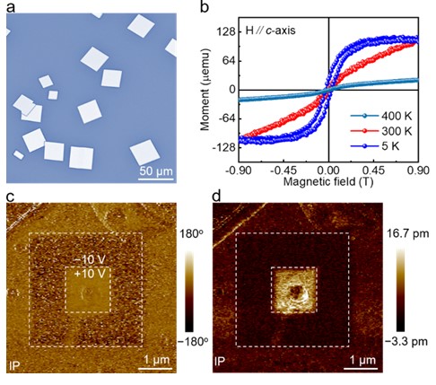 永久存储技术的终极目标是通过有效手段控制存储介质中的稳定状态。磁电材料和多铁材料通过利用铁电序和磁序之间的交叉耦合,为数字信息处理提供了一条新的途径,被誉为未来信息存储的领航者。关于多铁材料的基础理论研究,近年来多次问鼎诺奖风向标的“引文桂冠奖”。需要指出的是,在二维半导体材料体系中实现铁电序和磁序的交叉耦合调控,可同时控制电子的电荷、自旋和极化等属性,使得信息处理和信息存储功能集成在单一芯片上,进而替代传统微电子技术,成为下一代信息技术发展的重要方向之一。然而,由于铁电序和磁序的物理起源不同,在同一材料体系中同时获得上述两种物性极其困难,并且在二维材料体系中探索和调控多铁性尚未取得实质性实验进展。