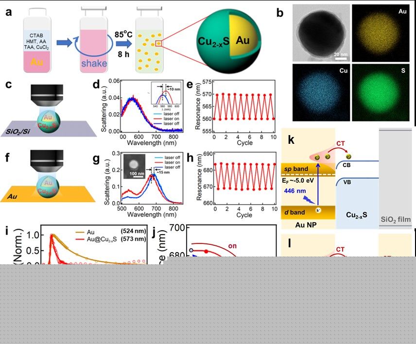 图1. Au@Cu2-xS核壳颗粒用于等离激元的快速可逆调控及其机理分析