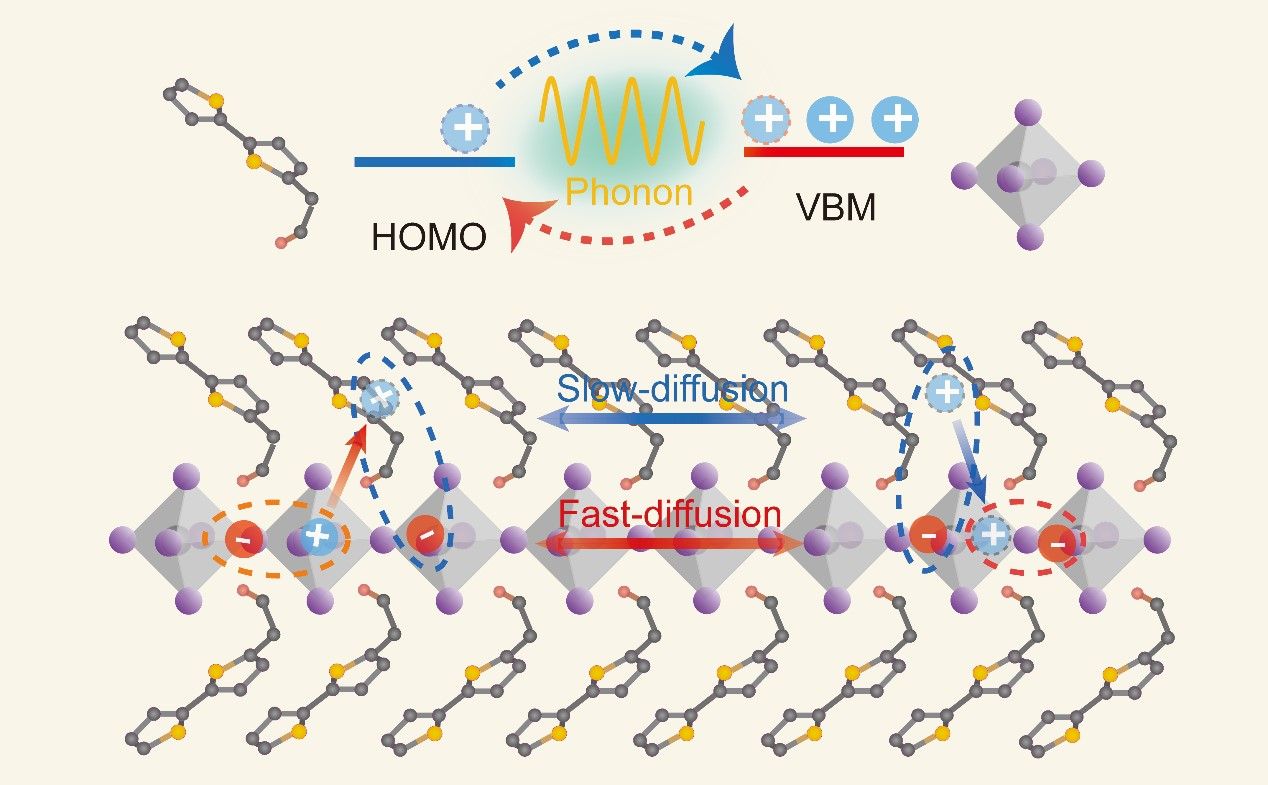 在这项工作中,利用三种不同尺寸的有机半导体配体2T、3T、4Tm,形成了具有不同能带排列的二维有机半导体钙钛矿。理论计算和拉曼光谱表明,有机配体的长度显著影响电子-声子耦合,并塑造了不同的电子结构。值得注意的是,在(2T)2PbI4中强烈的电子-声子耦合诱导了其能带排列在I型和II型来回变换。从而使空穴在有机和无机层之间表现出动态切换的行为。这一现象导致了异常的载流子扩散和局域载流子分布行为。该项研究展示了通过有机配体工程控制电子-声子耦合和载流子传输在二维有机半导体钙钛矿中的潜力,为高性能光电器件的发展提供了有价值的参考。
