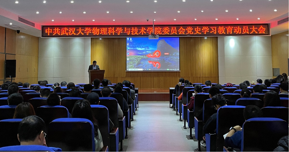 为认真贯彻落实党中央《关于在全党开展党史学习教育的通知》精神,按照学校党委统一部署安排,2021年3月31日,物理科学与技术学院在新楼报告厅召开党史学习教育动员大会,院党政领导班子、全院教职工党员、离退休党员代表、学生党员代表参加了动员大会,何军院长主持动员大会。