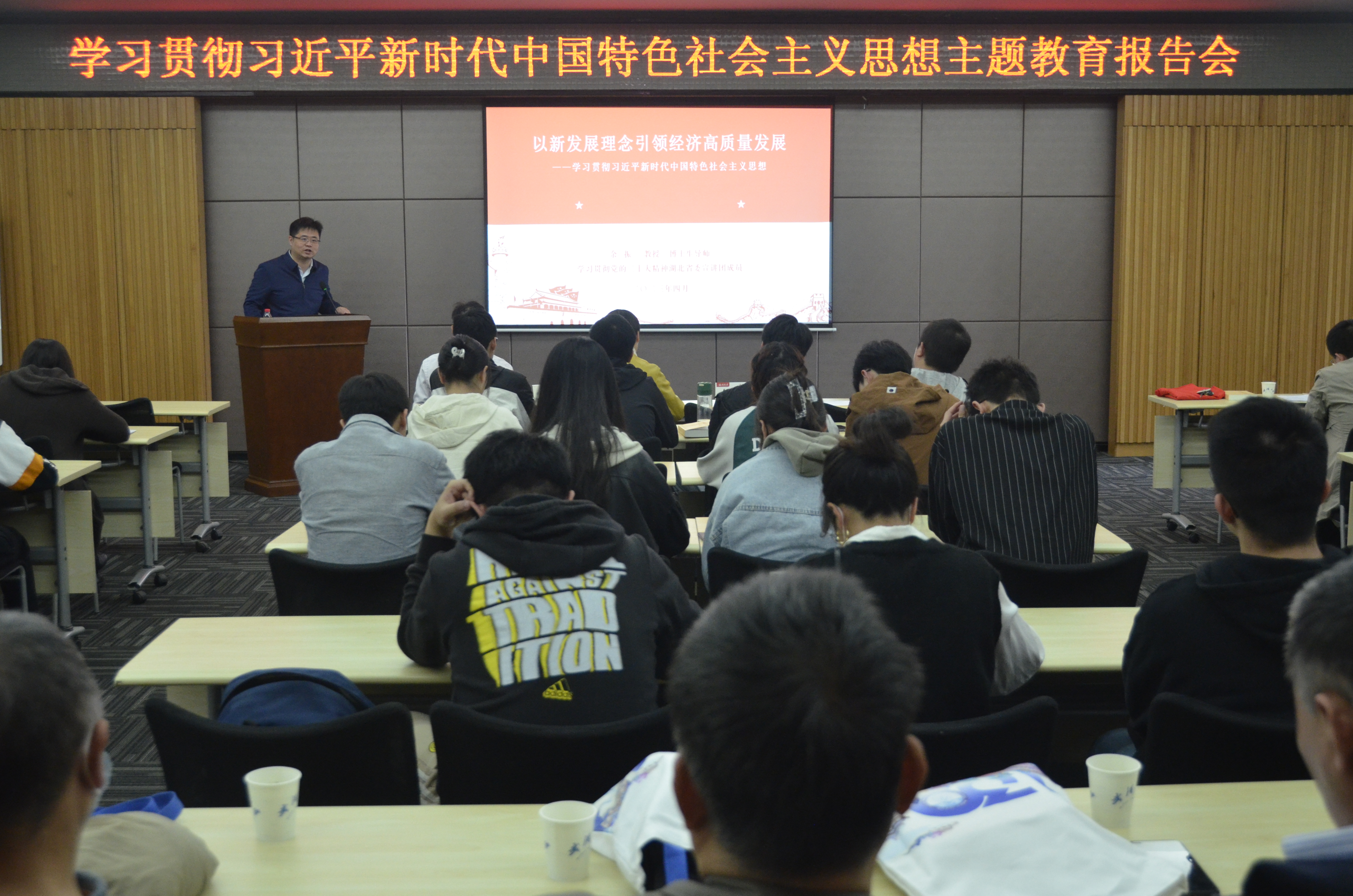 4月26日,物理科学与技术学院在D505多功能厅举行学习贯彻习近平新时代中国特色社会主义思想主题教育报告会。武汉大学经济与管理学院副院长余振教授作了题为《以新发展理念引领经济高质量发展——学习贯彻习近平新时代中国特色社会主义思想》的专题辅导报告。学院党委理论学习中心组,教职工党支部、离退休党支部和学生党支部书记、支委,各系(中心、办公室)主任、副主任,师生党员代表,离退休党员代表参加学习。活动由学院党委委员、副院长(挂职)张顺平主持。