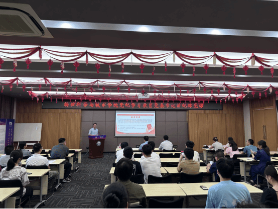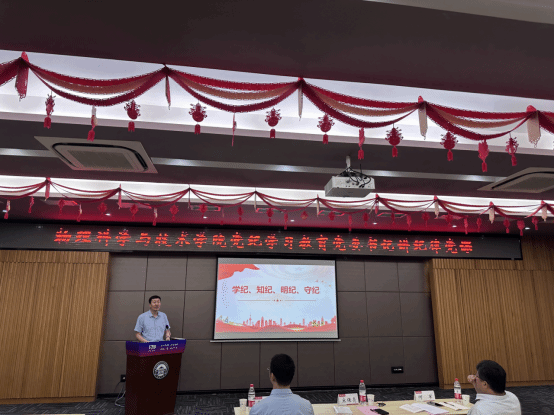 5月27日下午,分党委书记肖湘衡作题为《〈中国共产党纪律处分条例〉学习解读》的纪律党课,副校长宋保亮、学校党纪学习教育工作组第二组副组长高裕、工作人员杨秋莎列席党课,院长何军作主持。