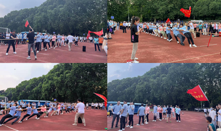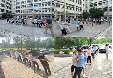 学院共组织了26位教职工队员参加了拔河比赛,同时还组成了以学院党委书记和院长为首的阵容强大的拉拉队。在正式比赛之前,老师们百忙之中抽空积极备战,在学院天井及门口认真训练,运用物理知识和网上视频资料,结合实际练习情况,认真讨论、分析及总结拔河比赛经验和技巧。