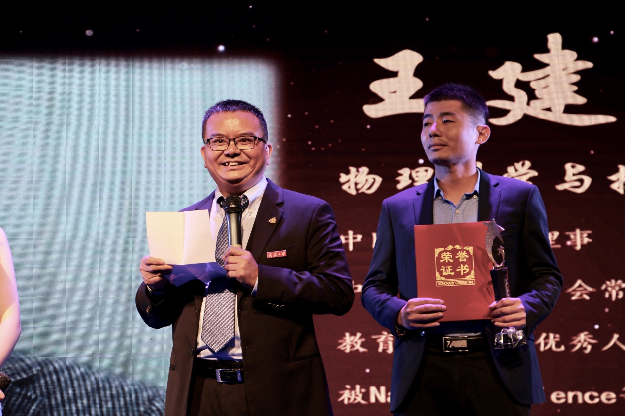 王建波老师最后一个上台领奖,他的学生代表郑赫老师为其颁奖。学生们为他准备的颁奖词是“扎根基础教学十八年,他是学生成长的引路人;开展因材施教特色班,他是创新培养的推动者;他和蔼可亲、幽默风趣,一丝不苟、内峻外和。他是电子显微之路的引导者、是情系学生的教育者。”王建波老师在获奖感言中谈到:感谢我们身处这个伟大的时代,全社会都在大力弘扬尊师重教的良好风尚,使教师成为最受社会尊重的职业;感谢我们就职于这个美丽的大学,从人才强校年,到学生为本年,学校一直重视教师队伍建设和学生全面发展;感谢我们身边优秀的老师和同学们,我们将把全部精力和满腔真情献给教育事业,在教书育人的工作中不断创造新业绩。