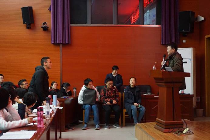 之后,刘继峰教授展示了搜寻系外行星的进展:“统计研究发现,整个银河系中有500亿-1600亿行星,5亿-20亿宜居带类地行星。”刘继峰教授提到《三体》之炎热行星(Alpha Centauri B b)和星球大战中的塔图因星球(Kepler-16b),将行星知识与同学们喜爱的科幻作品相结合,拉近同学们与行星的“距离”。他还展示了众多已观测行星与地球的相似度指数,而计算相似度的基础依赖于高精度的检测,在此,刘继峰教授表现出对中国与西班牙合作研制的大口径望远镜与精确光谱仪的美好期待。