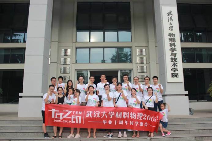 2019年7月6日,武汉大学物理科学与技术学院2005级材料物理专业的16位校友,带着对美丽母校的深深思念,带着对昔日师友的深厚情谊,从全国各地迫不可待地赶来,在离校十年之后重新回珈欢聚。
