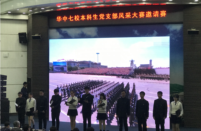 我院本科生2015级党支部近日参加华中七校本科生党支部风采大赛,同来自武汉大学、华中科技大学、武汉理工大学、中国地质大学(武汉)、华中农业大学、华中师范大学和中南财经政法大学等7所高校的10个优秀本科生党支部同台竞技。校党委副书记赵雪梅、湖北省教育厅思想政治教育与社会科学研究处处长何泽云,以及各参赛高校相关职能部门和院系负责人出席并担任评委。