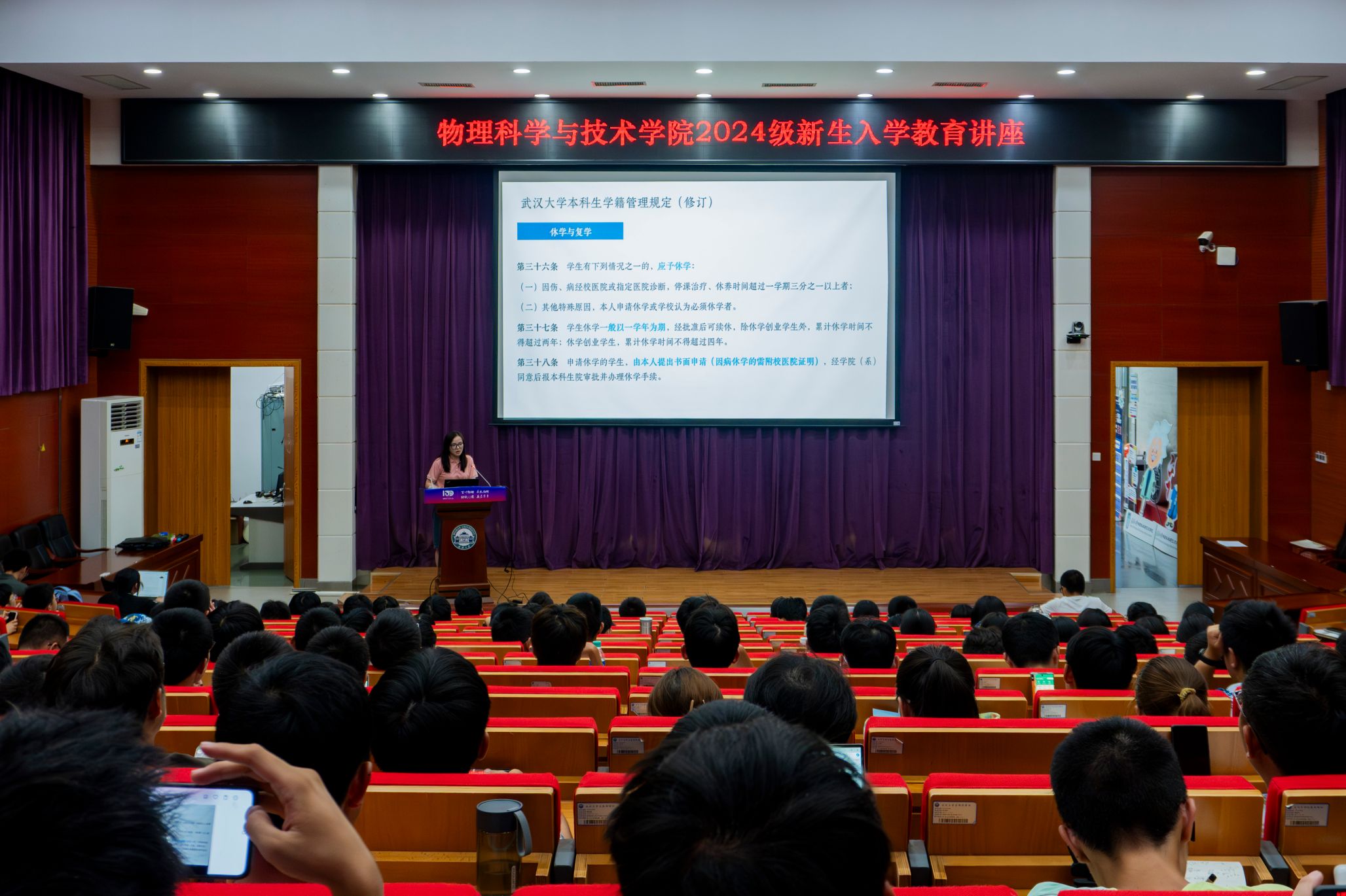 为引导和帮助2024级本科新生更好地适应大学生活,树立正确的价值观和奋斗目标,为未来学习生活顺利进行打下坚实基础,2024年9月13日晚19:00,物理科学与技术学院2024级本科新生入学教育专题讲座在物理科学与技术学院一楼报告厅顺利举行。作为2024级本科生“一年级计划”系列活动,本次入学教育专题讲座结合工作实际统筹谋划,从思想引领、专业培养、心理健康、素质培养等多个方面深入展开,扎实推进2024级本科生“一年级计划”发挥育人成效。