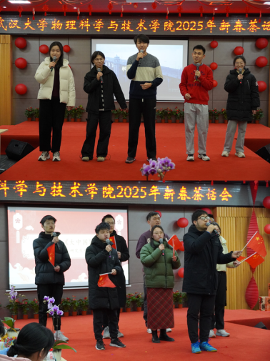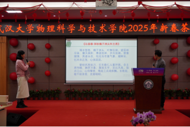 2025年物理科学与技术学院新春茶话会在一片欢声笑语中圆满结束。本次茶话会不仅展示了全院师生的才艺和风采,也增进了彼此之间的感情和凝聚力。新的一年,物理科学与技术学院将继续秉持“团结、进取、求实、创新”的精神,迎接新的挑战,创造更加辉煌的未来。