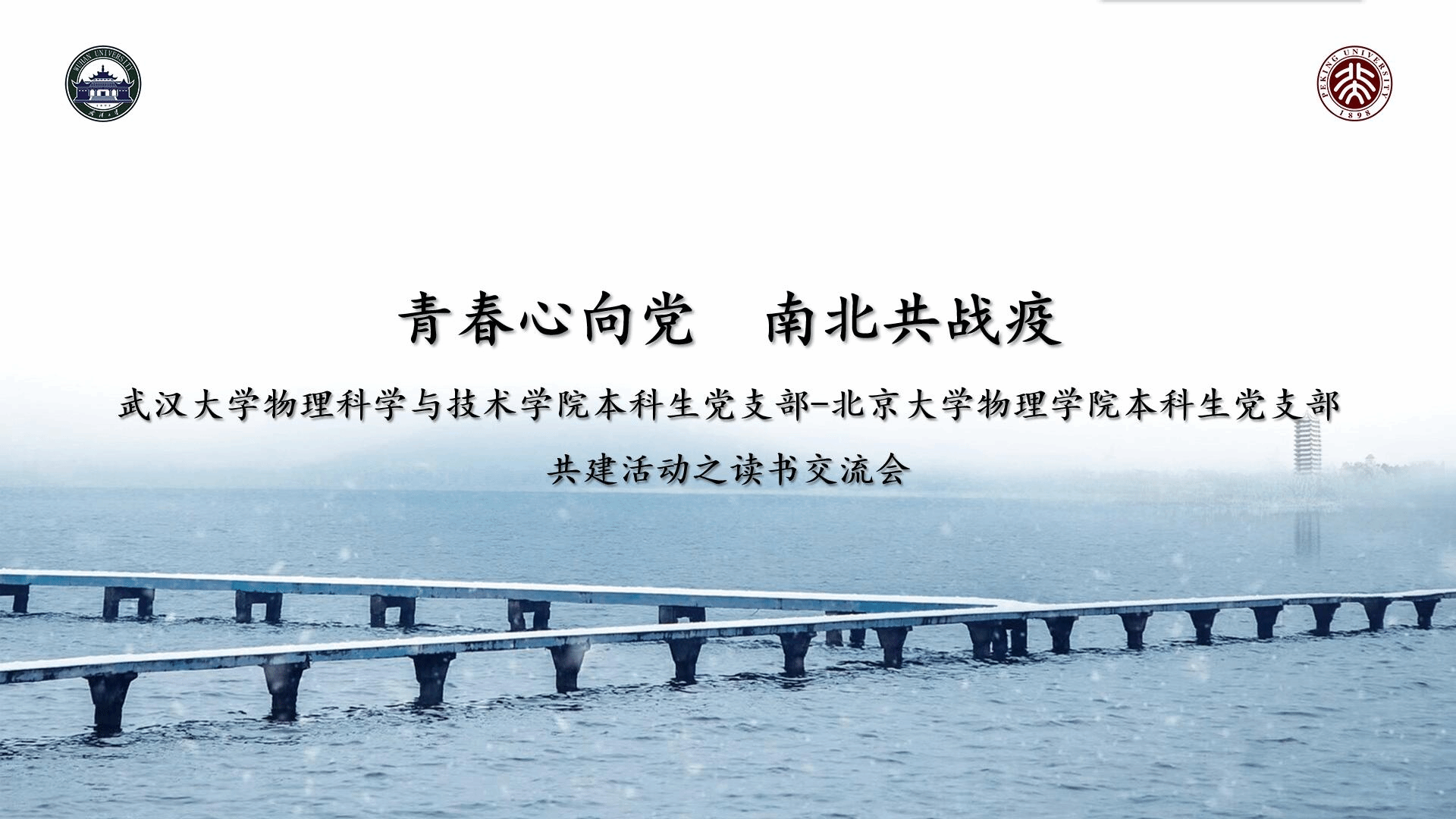 俄国作家鲁巴金曾经这么评价读书的作用:读书是在别人思想的帮助下,建立自己的思想。作为新时代的青年,我们需要在经典著作中汲取精神养分,启迪智慧,这样才能更好地认识这个时代,理解这个时代,从而有为于这个时代。为落实两校物院党支部守望相助,持续共建的共同愿望,北京大学物理学院和武汉大学物理科学与技术学院于5月10日晚7:00共同举办了“青春心向党 南北共战疫”系列活动第三场之读书交流会。
