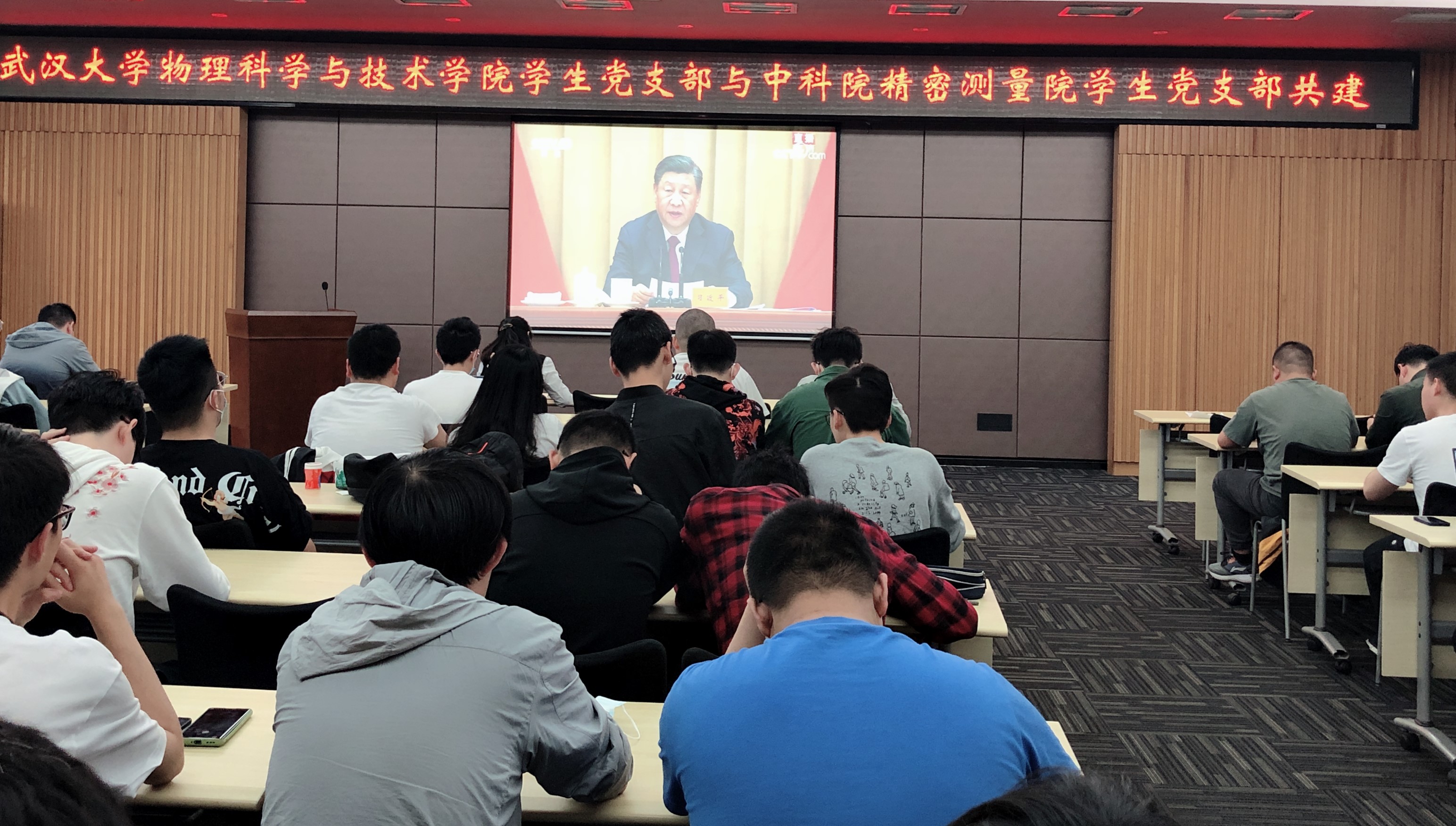 5月10日上午,庆祝中国共产主义青年团成立一百周年大会隆重举行,习近平总书记出席大会并发表重要讲话。武汉大学物理科学与技术学院与中科院精密测量科学与技术创新研究院联合开展党建活动,200余名青年学生党员共同观看习近平总书记重要讲话并进行热烈交流。