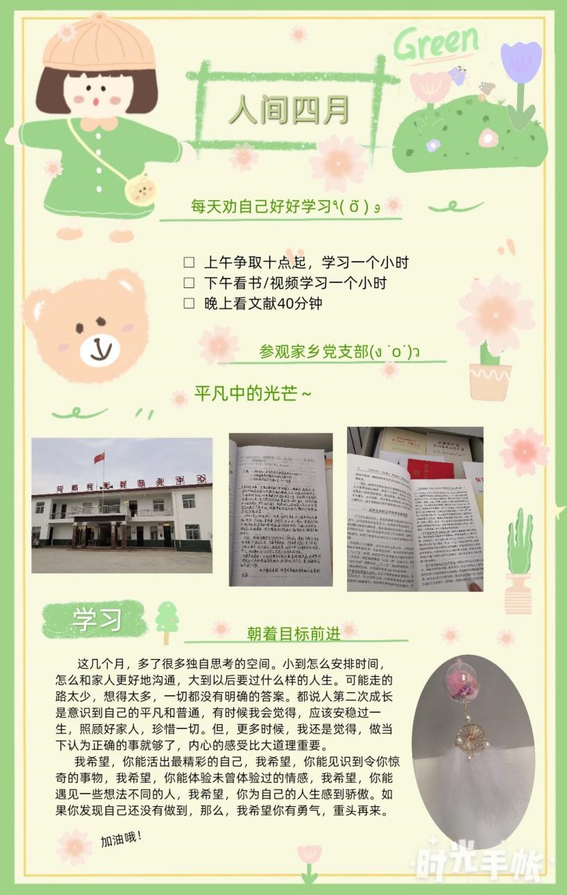 【学习类手账展示】学无止境当列前。朋小秀同志向大家分享自己在家的生活,其中包括学习、运动以及厨艺展示。赵亚男同志向大家分享了自己在家乡党支部的一些所见所闻,表达了自己要向身边的榜样学习,另外也给大家分享了一些自己关于学习和生活的鼓励。