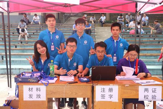 辰时未到,院党委副书记张一飞、学院研工办主任李顺彦、院研究生兼职辅导员龙云翔和院研究生会的小伙伴们已经齐聚梅园小操场迎新点,为即将到来的迎新工作做好准备。