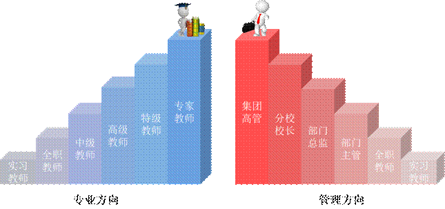 在方田,我们提供专业和管理双向晋升模式,你可以选择自己的发展道路,同样也可以在教学水平和管理职能上同时提升。