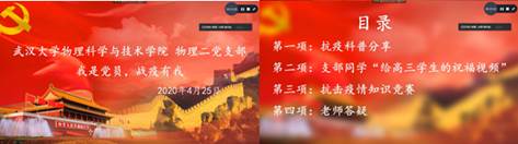 2020年4月25日19时,物理科学与技术学院物理二党支部的党员同学及积极分子通过腾讯会议组织召开了“我是党员,战疫有我”的主题党日活动。支部指导老师刘惠军教授、学院党委副书记张一飞老师及总支书记尚才杰同学参加会议,支部书记唐庆航同学主持此次会议。