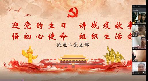 物理科学与技术学院微电二党支部于2020年7月6号上午10点通过腾讯会议的形式,线上召开“迎党的生日、讲战疫故事、悟初