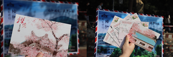 值得一提的是,今年的迎新过程中,我们举办了一个特殊的活动。我们向每一位新生发放了一张武大专属明信片,同学们在上面写上寄语,随后就可将明信片寄回家,告诉家人和朋友,彩虹依旧,珞珈如故!