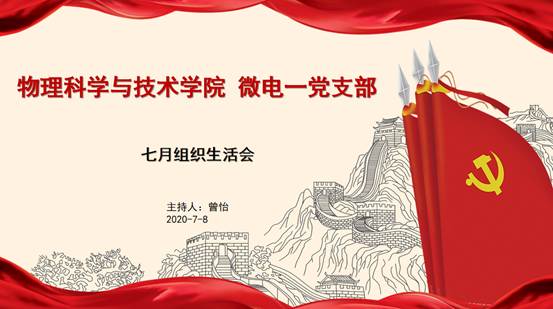 为庆祝中国共产党成立99周年,物理科学与技术学院微电二党支部于2020年7月8日下午通过腾讯会议APP,线上召开以“迎党的生日、讲战疫故事、悟初心使命”为主题的组织生活会,会议由支部书记曾怡主持,支部6名党员参加了这次特殊的支部大会。