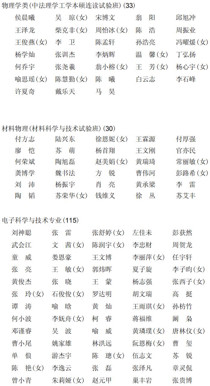 2011 级(2011~2015)物理科学与技术学院