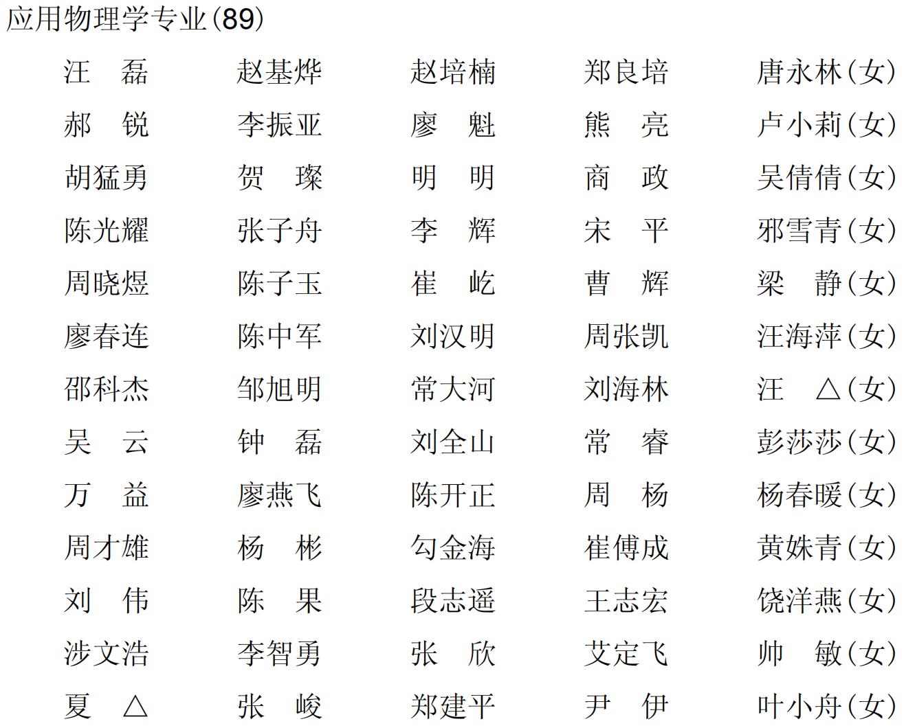 2001 级(2001~2005)物理科学与技术学院