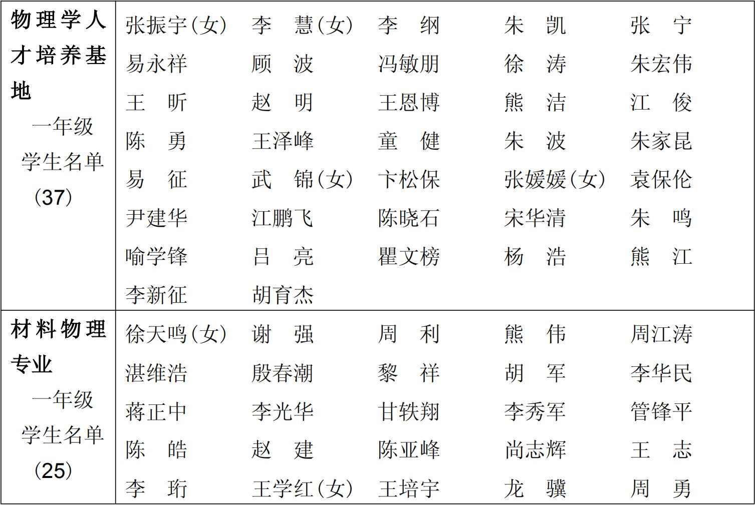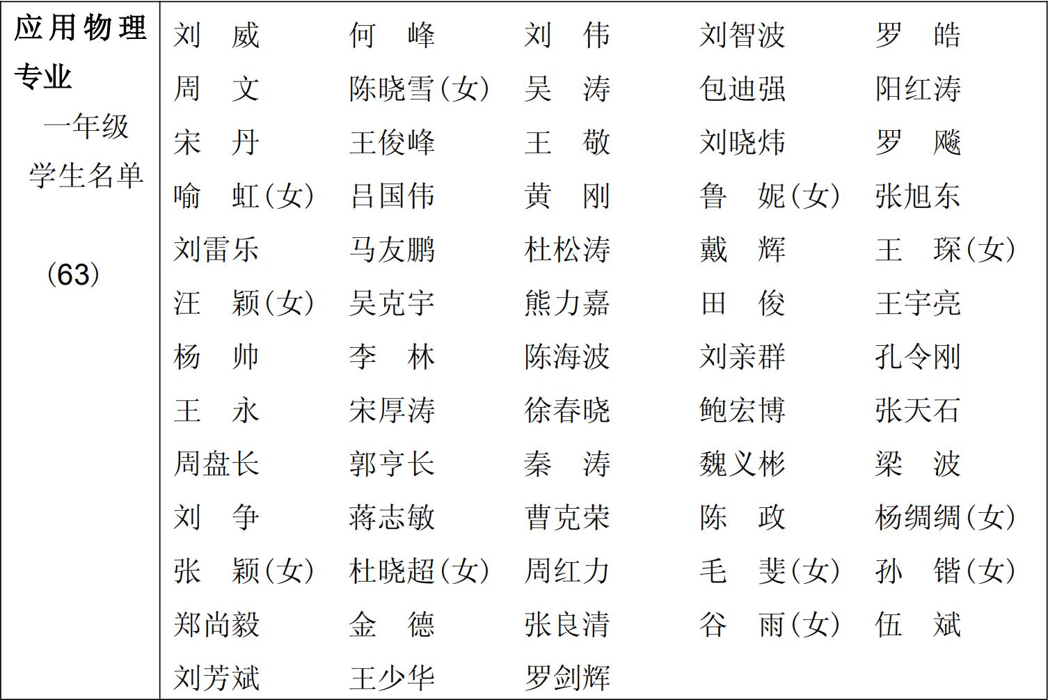 1996 级(1996~2000)物理学系